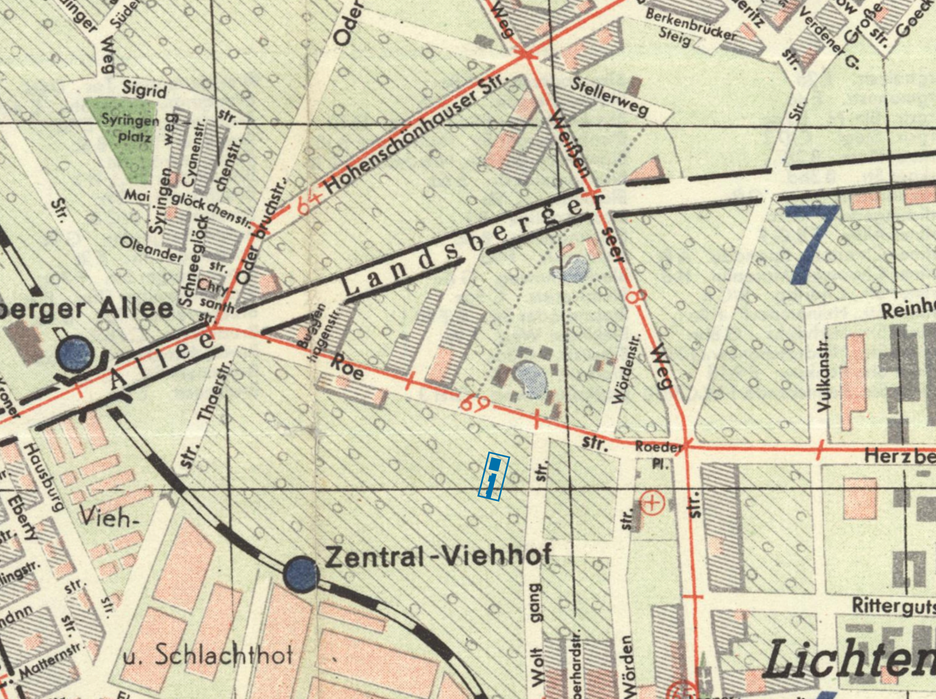 Eine Karte zu agronomischen Bohrungen rund um Berlin aus dem Jahr 1881 zeigt dort bereits den „Central-Viehhof“ sowie den gleichnamigen Bahnhof der Stadtbahn, der heute als S-Bahnhof Storkower Straße bekannt ist. Ebenfalls verzeichnet sind der Lange Pfuhl und der Fenn Pfuhl, die in den 1980er Jahren zum Fennpfuhl zusammengelegt wurden (Leopold Kraatz, 1881).
